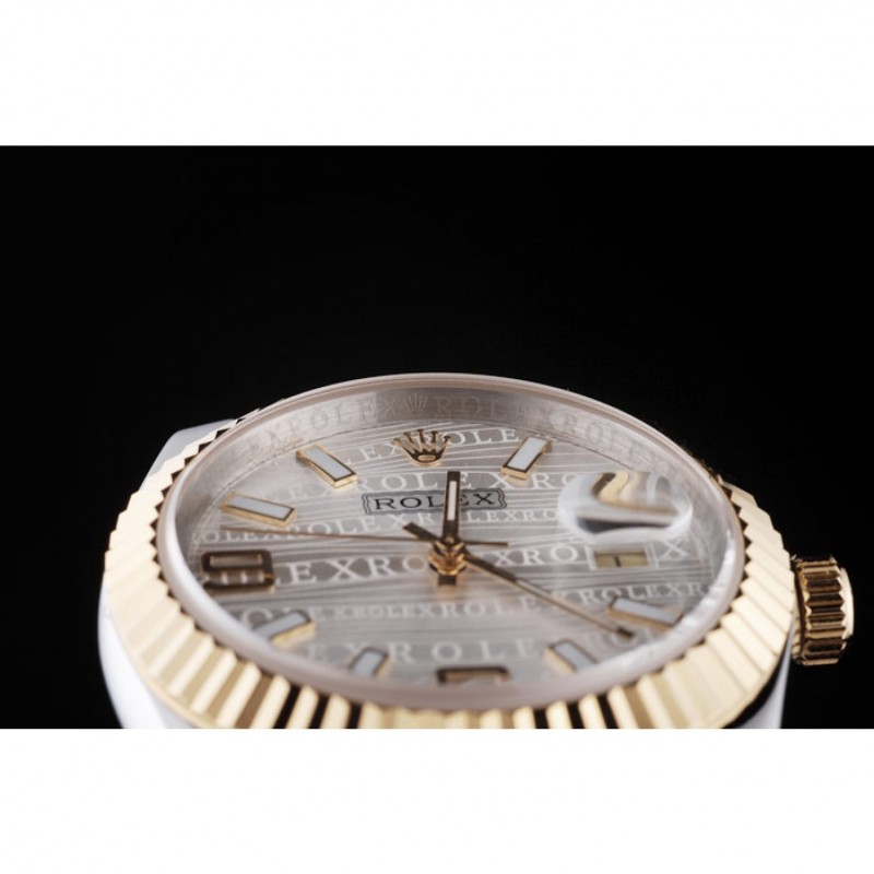 Il bracciale a maglia bicolore in acciaio inossidabile spazzolato e acciaio placcato in oro 18k con chiusura a scatto nascosta incisa con il logo Rolex è comodo da indossare e si adatta perfettamente al polso. Con un vetro in cristallo di zaffiro resistente agli urti, questo orologio è progettato per resistere alla prova del tempo e mantenere il suo splendore nel corso degli anni. Con una frequenza di oscillazione di 28.800 volte all’ora, questo orologio è un modello di precisione e affidabilità.